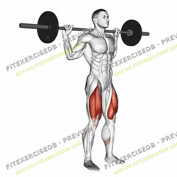 - Hold the barbell across your upper back, resting it on your traps or rear delts.