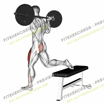 - Stand with your feet shoulder-width apart and hold a barbell across your upper back.