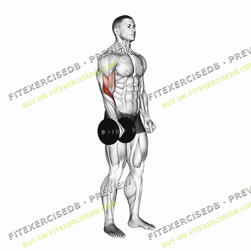 1. Stand up straight with your feet shoulder-width apart and hold a dumbbell in one hand with an overhand grip.