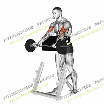 - Stand with your feet shoulder-width apart and hold the ez barbell with an underhand grip, palms facing up.