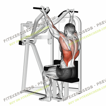 - Pull the handles down towards your chest, squeezing your shoulder blades together.