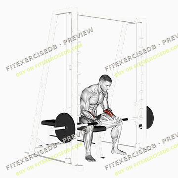 - Sit on a bench in front of a Smith machine with your feet flat on the ground.