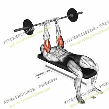 - Keeping your upper arms stationary, slowly lower the barbell towards your forehead by bending your elbows.