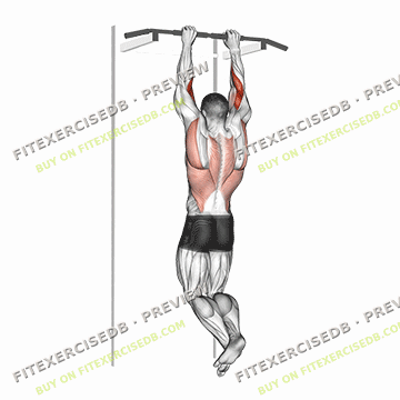 1. Hang from a pull-up bar with your palms facing away from you and your hands shoulder-width apart.