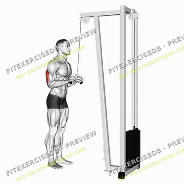 - Engage your triceps and exhale as you push the v-bar down until your arms are fully extended.