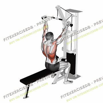 2. Sit down on the seat and grab the pulldown bar with an underhand grip, hands slightly wider than shoulder-width apart.