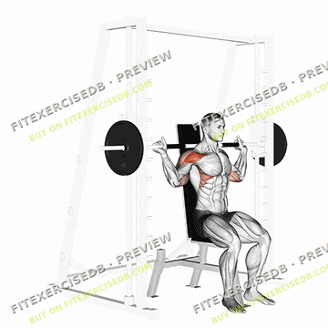 - Adjust the seat height of the smith machine so that the bar is at shoulder level.