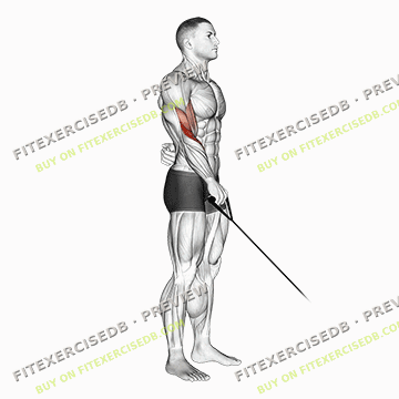 - Grasp the cable handle with an underhand grip, palm facing down.