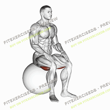 - Sit on the stability ball with your feet flat on the ground and your knees bent at a 90-degree angle.