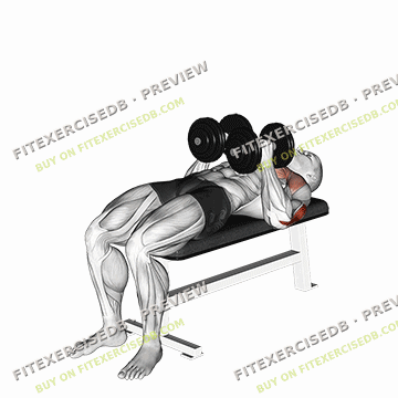 - As you exhale, use your triceps to lift the dumbbells back to the starting position. Make sure to use only your triceps and do not use your forearms or biceps to help lift the dumbbells.