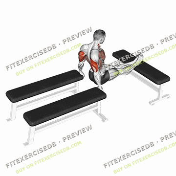 - Sit on a bench with your hands gripping the edge, fingers pointing forward.