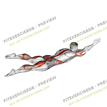 - Engage your core and lift your chest and legs off the ground simultaneously.