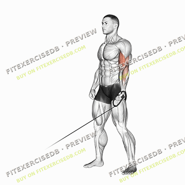 - Grasp the cable handle with an underhand grip, palm facing up.