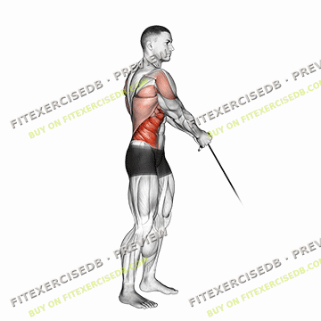 5. Pause for a moment at the top, then inhale and slowly lower the cable handle back to the starting position.