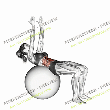 - Engage your abs and lift your upper body off the ball, curling your shoulders towards your hips.
