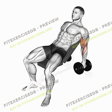 - Sit on an incline bench with a dumbbell in each hand, palms facing your torso and arms fully extended.