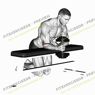 1. Sit on a bench with a dumbbell in one hand and your arm extended over the bench, palm facing up.