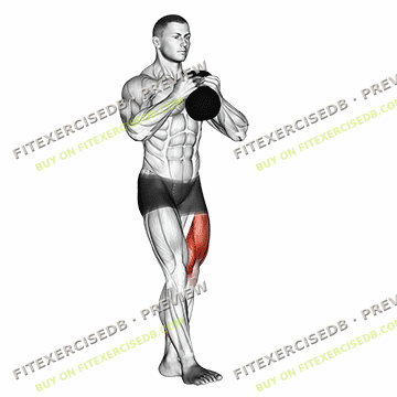 - Stand with your feet shoulder-width apart, holding a kettlebell in front of your chest with both hands.