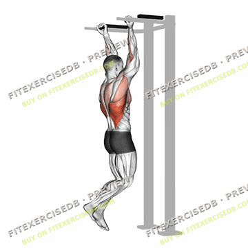 - Hang from the bar with your arms fully extended and your body straight.