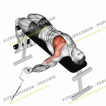 1. Attach a D-handle to a low pulley cable machine and set the bench to a decline angle.