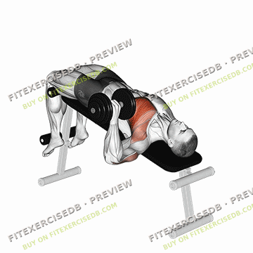 - Lie on a decline bench with a dumbbell in one hand, resting on your chest.
