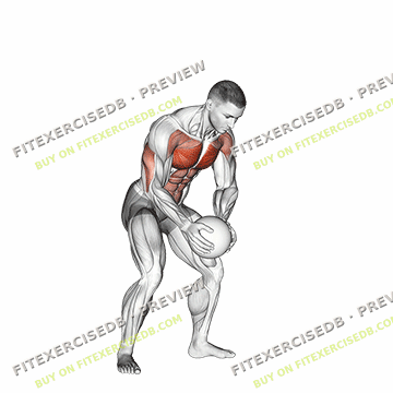 - Stand with your feet shoulder-width apart, holding a medicine ball at chest level.