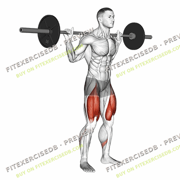 1. Stand with your feet shoulder-width apart and the barbell resting on your upper back.