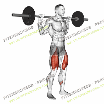 - Place the barbell on your upper back, resting it on your traps.