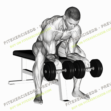 2. Hold a dumbbell in one hand with an underhand grip, resting your forearm on your thigh, palm facing up.