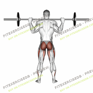 - Hold the barbell across your upper back, resting it on your traps or rear delts.