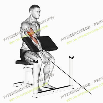 3. Grasp the cable handle with an underhand grip and position your upper arm against the preacher curl pad.