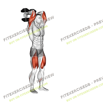 - Lower the dumbbells behind your head by bending your elbows.