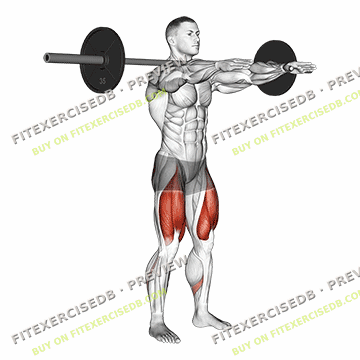 1. Stand with your feet shoulder-width apart and hold the barbell in front of your body with straight arms.