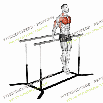 1. Position yourself between two parallel bars with your arms extended and supporting your body weight.
