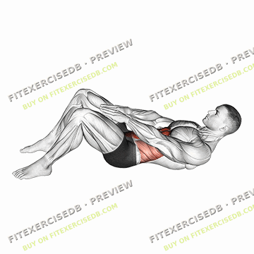 - Engaging your abs, lift your shoulder blades off the ground and reach your right hand towards your left knee.