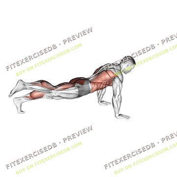 - To return to the starting position, push through your forearms and lift your body back up into a high plank position.