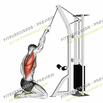 - Kneel down facing the cable machine and grab the handle with one hand.
