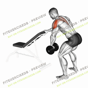 - Hold a dumbbell in one hand with your palm facing inwards.