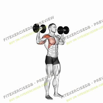 - Stand with your feet shoulder-width apart and hold a dumbbell in one hand at shoulder level, palm facing forward.