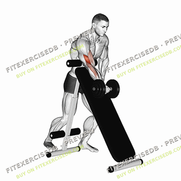 - Place your other hand on an incline bench for support.