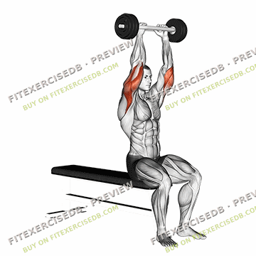 3. Keeping your upper arms close to your head, slowly lower the barbell behind your head by bending your elbows.