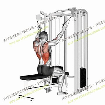 - Pull the handles down towards your upper chest, squeezing your shoulder blades together.