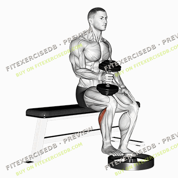 - Sit on a bench or chair with your feet flat on the ground and a dumbbell resting on your thighs.