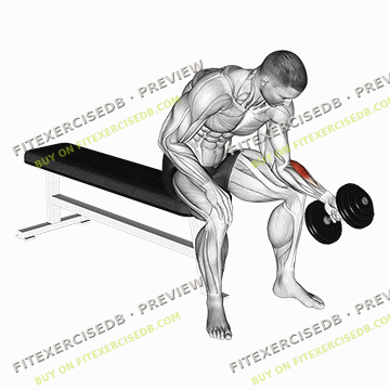- Sit on a bench with your feet flat on the ground and hold a dumbbell in one hand, palm facing up.