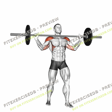 - Lower the barbell back to shoulder height and repeat for the desired number of repetitions.
