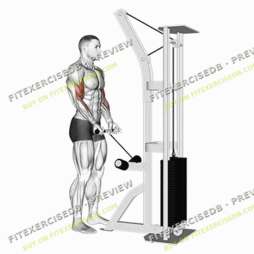 - Inhale and slowly lower the cable attachment back to the starting position, fully extending your arms.