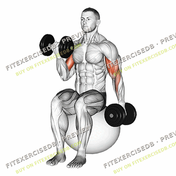 Dumbbell Alternating Seated Bicep Curl On Exercise Ball