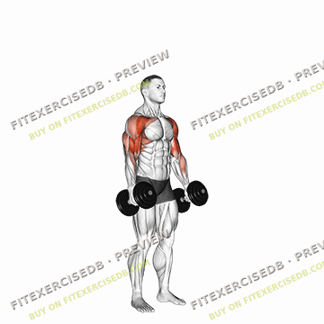 - Stand up straight with a dumbbell in each hand, palms facing your body.