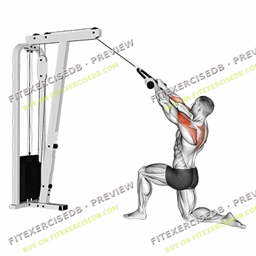 - Attach a rope handle to a low cable pulley and kneel down facing the machine.
